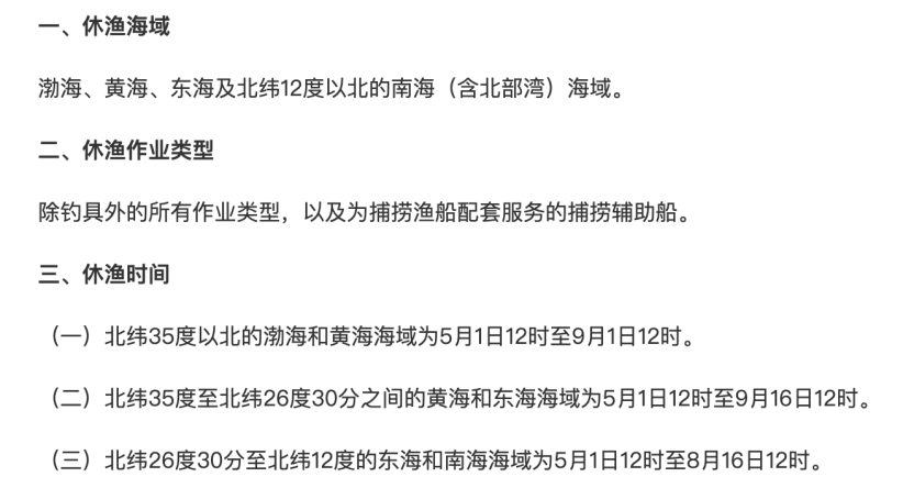 [1]《农业农村部关于调整海洋伏季休渔制度的通告》